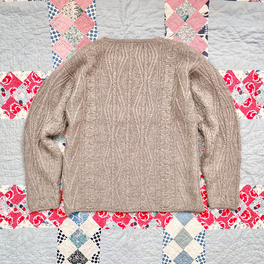 Vintage L.L. Bean Taupe Wool Cable Knit Sweater Made in Ireland M