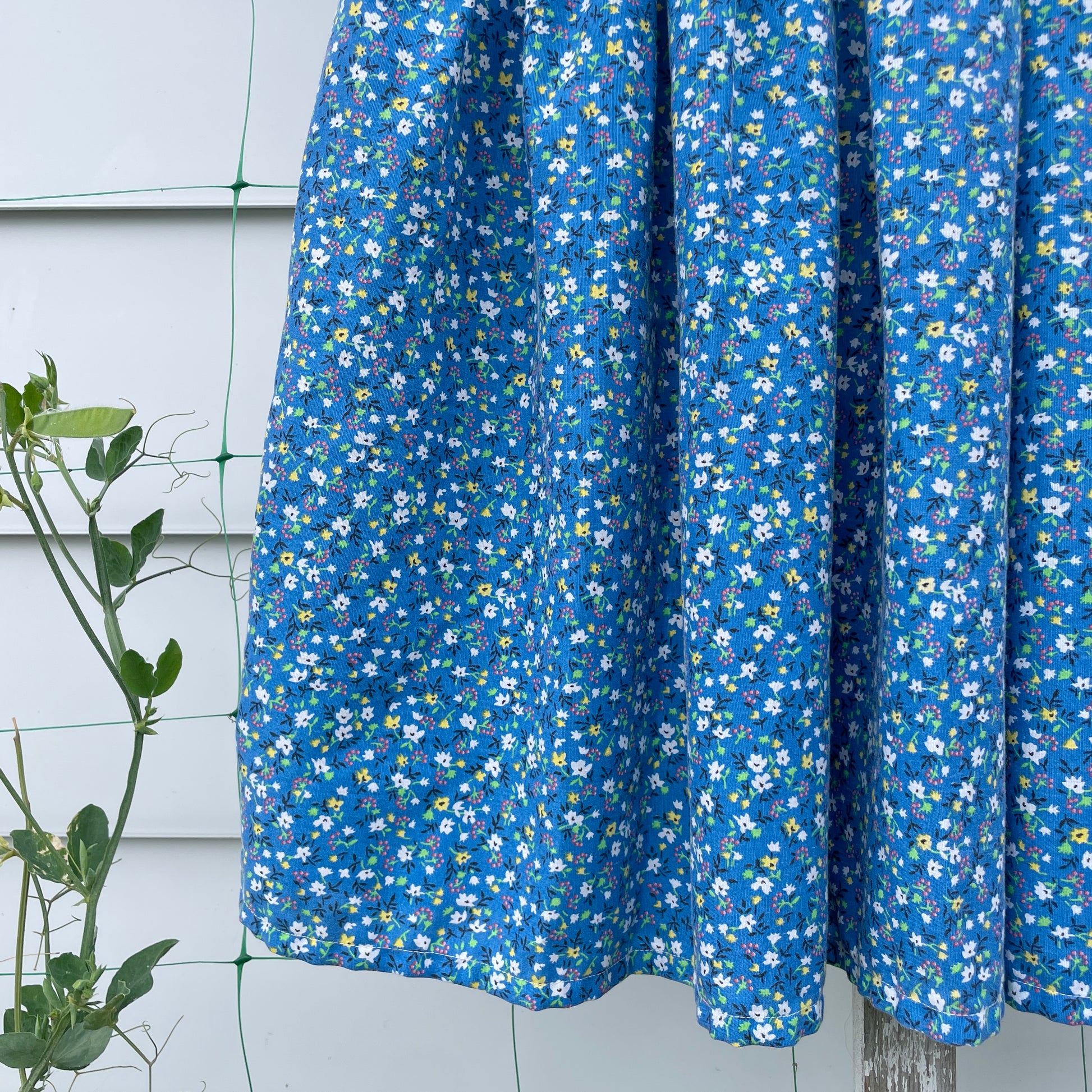 Blue Floral Prairie Dress with Ruffles Upcycled from Vintage Curtains XS