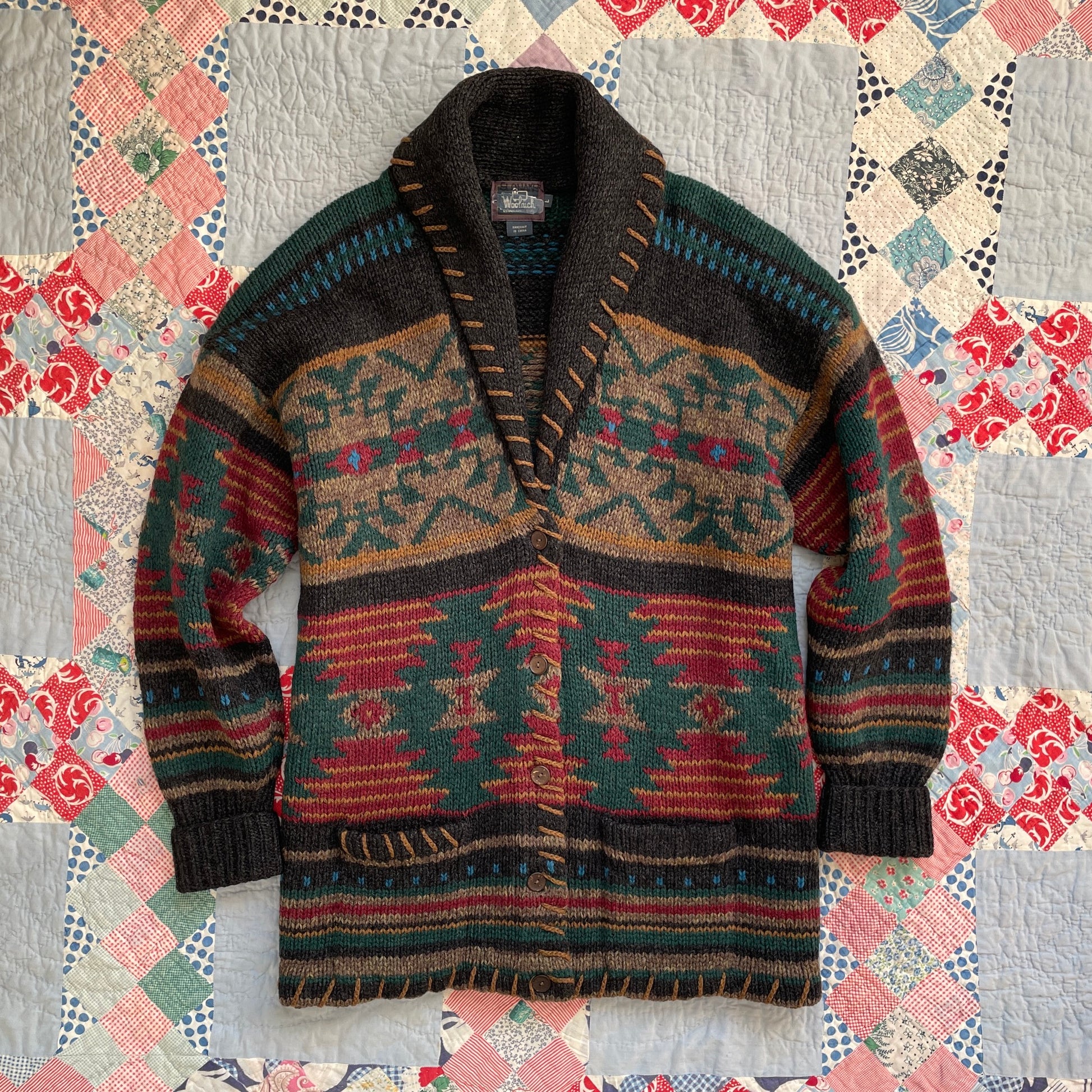Woolrich Handknit Shawl Collar Sweater Cardigan L