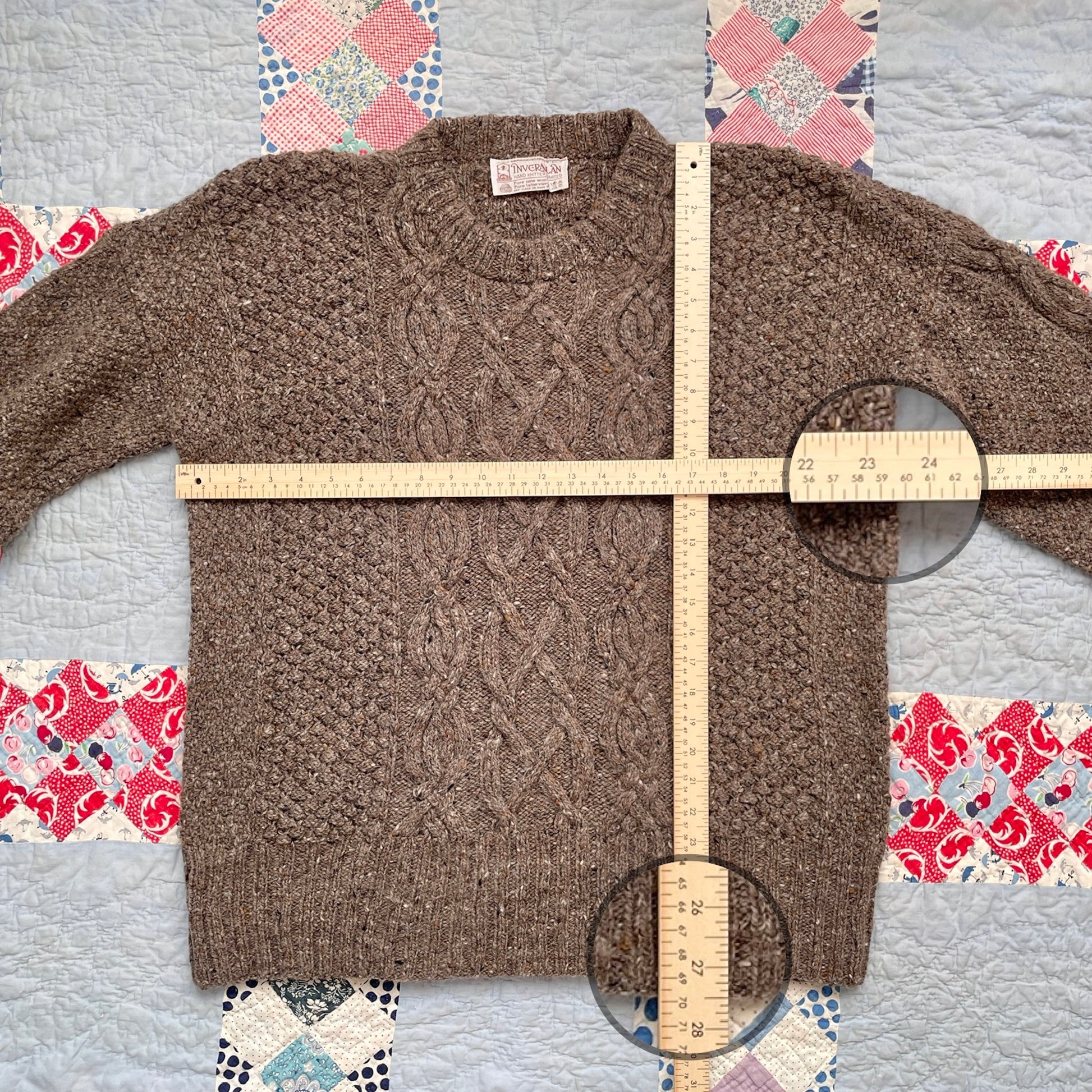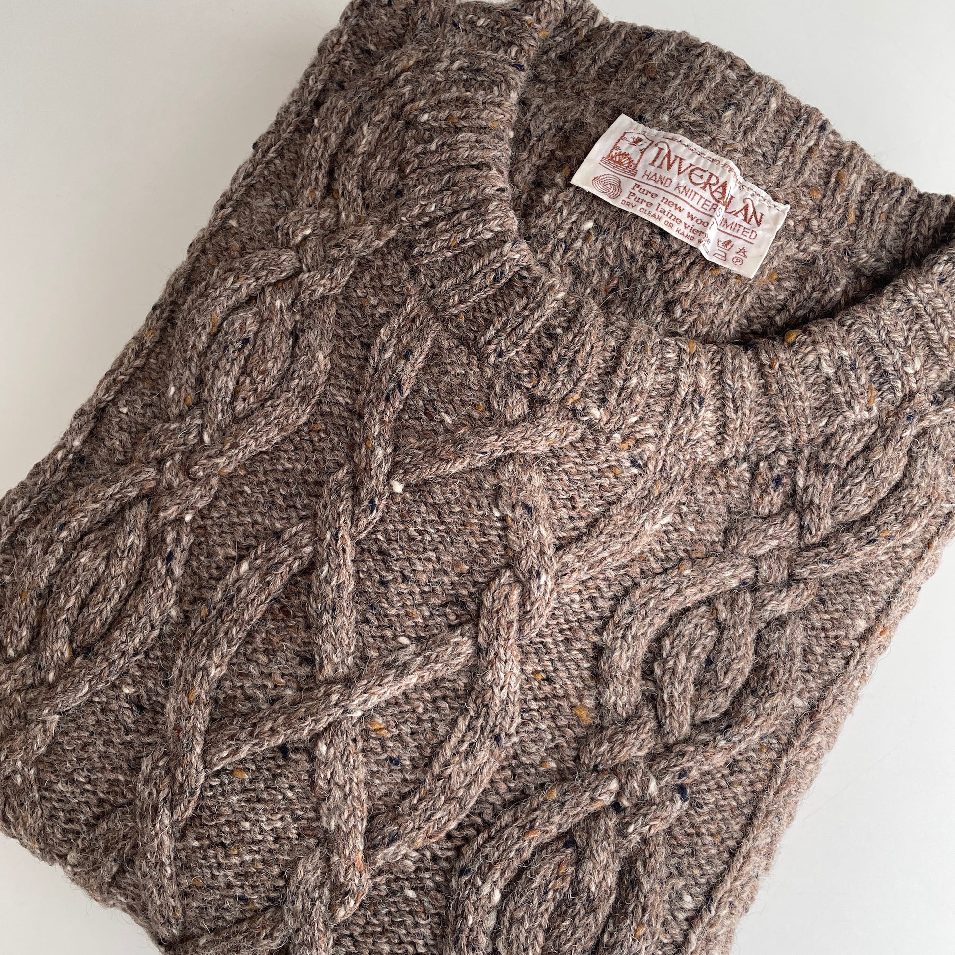 Inverallan Hand Knit Tweed Aran Fisherman Sweater