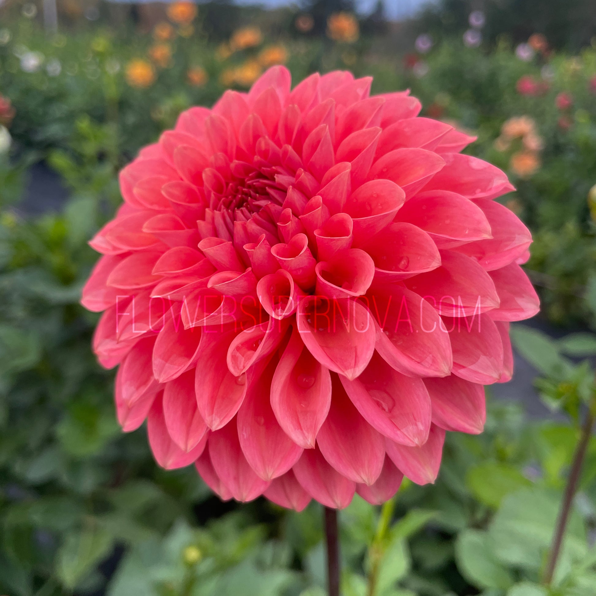 Clean coral coloured blooms with lovely form. Beautiful in the garden and in bouquets.