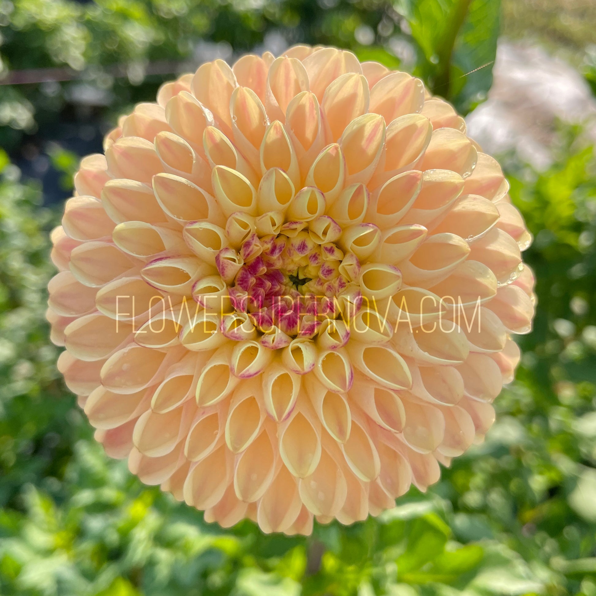 A gorgeous ball dahlia hybridized in Canada, by Trevor Hoff of Cable Bay Dahlias. Peachy yellow blooms on very long, strong stems.