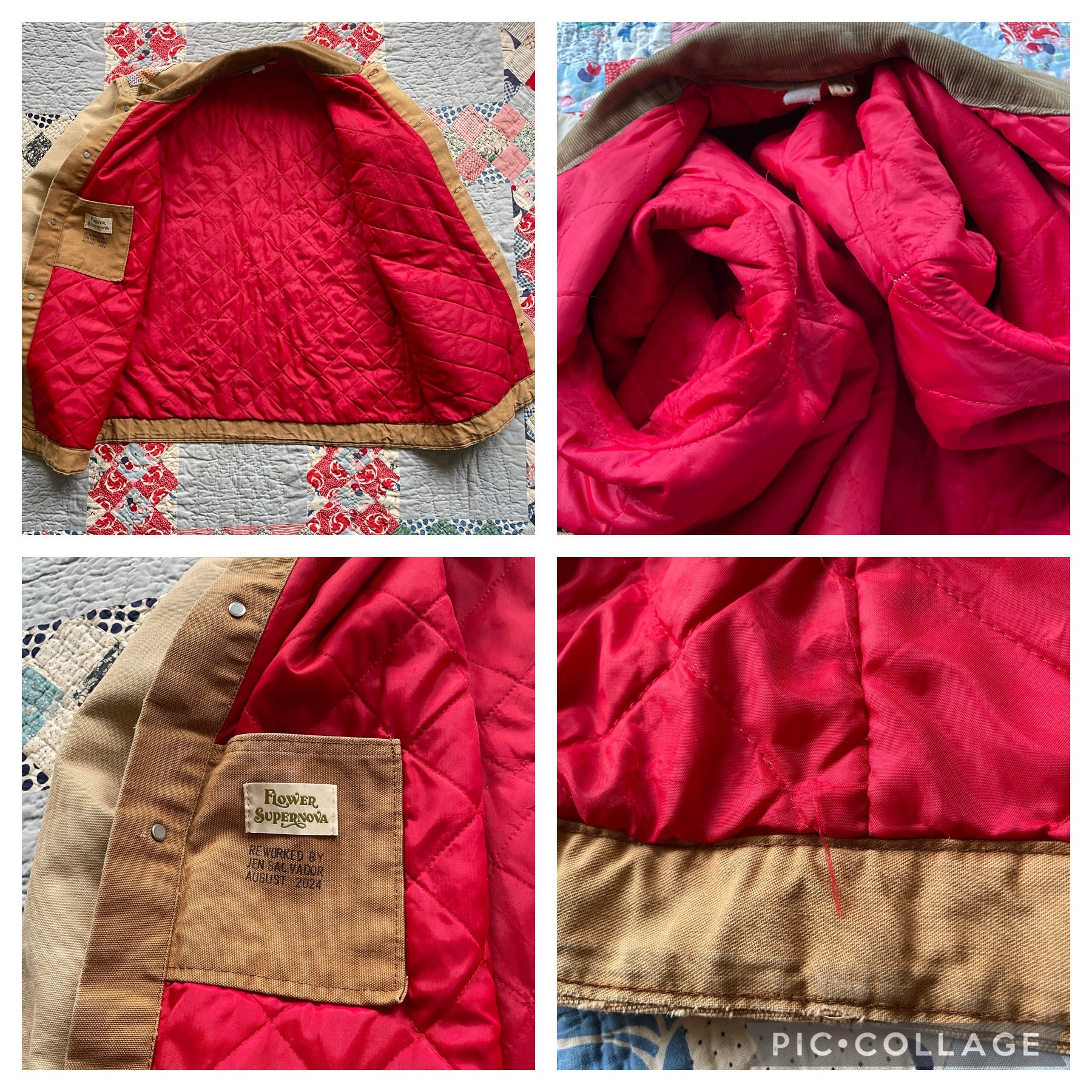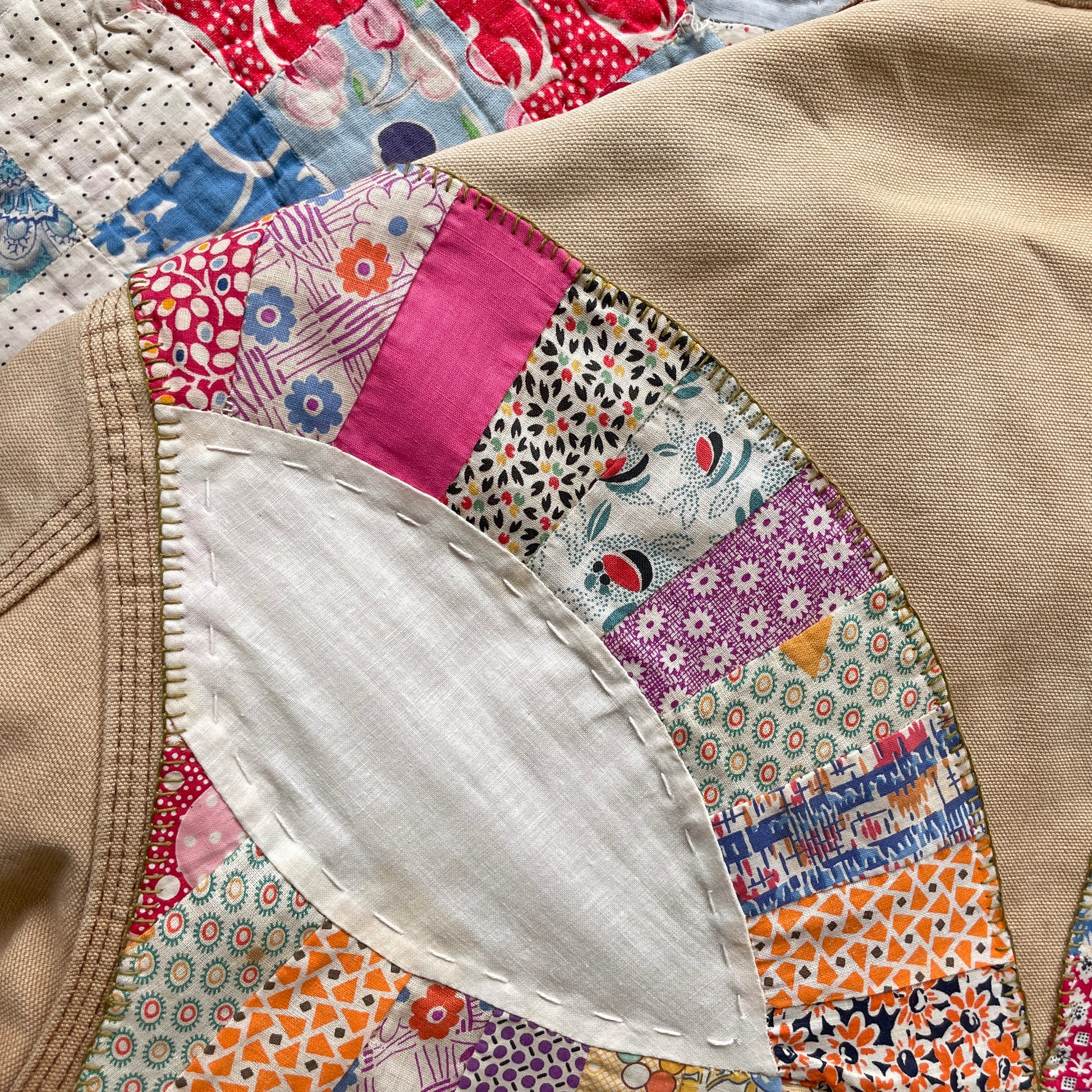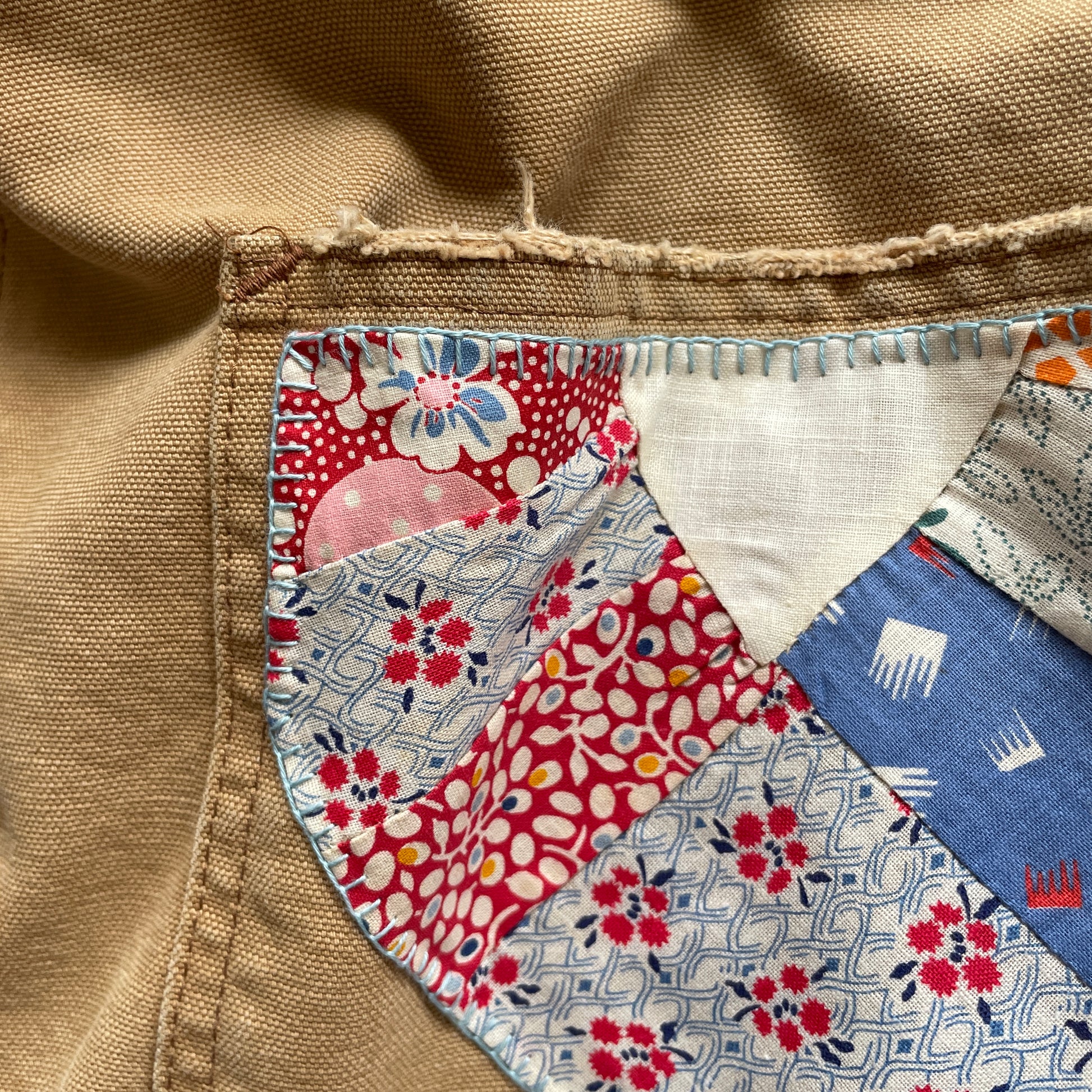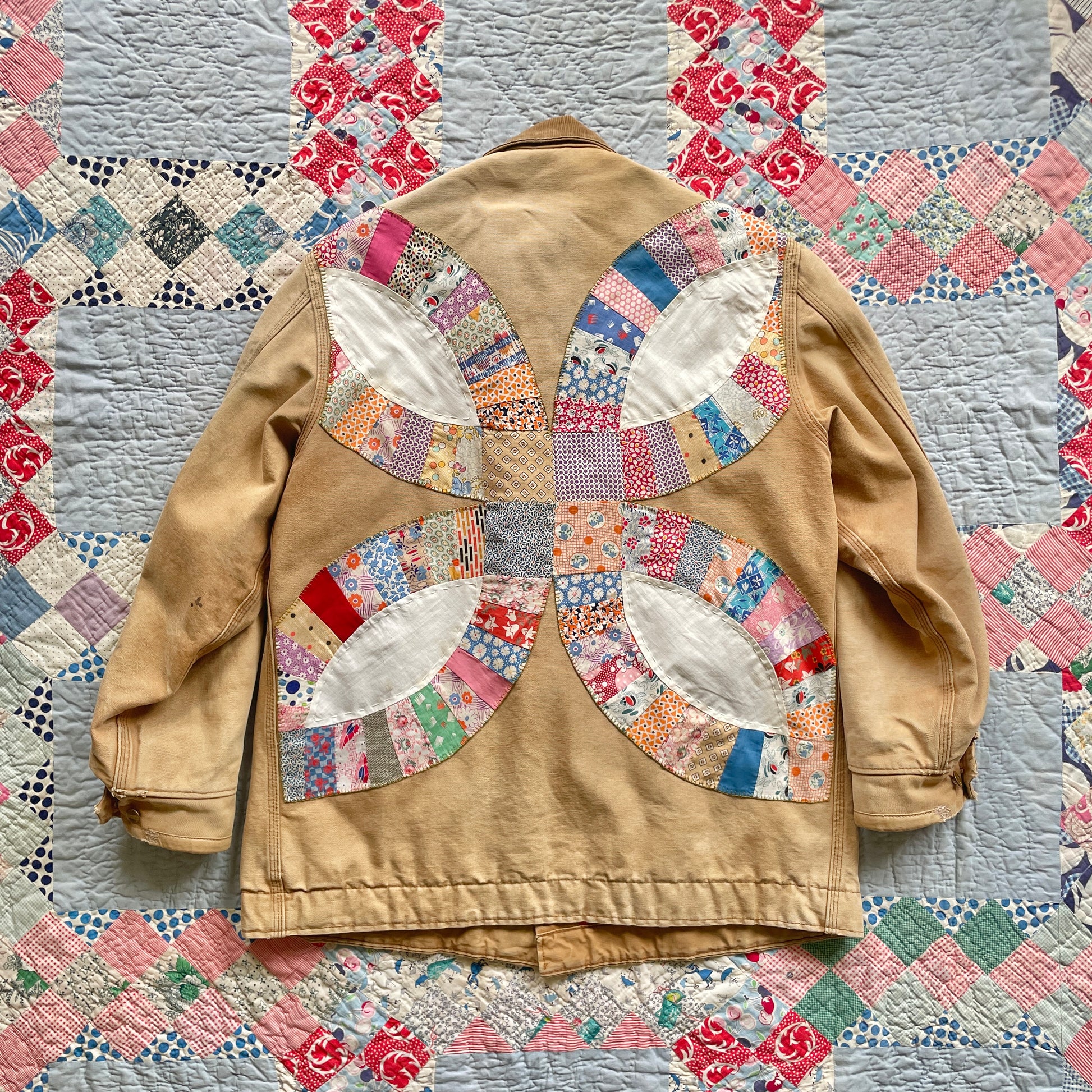 Reworked Carhartt Chore Coat Jacket with Quilt Patches Men's Size 46 XL