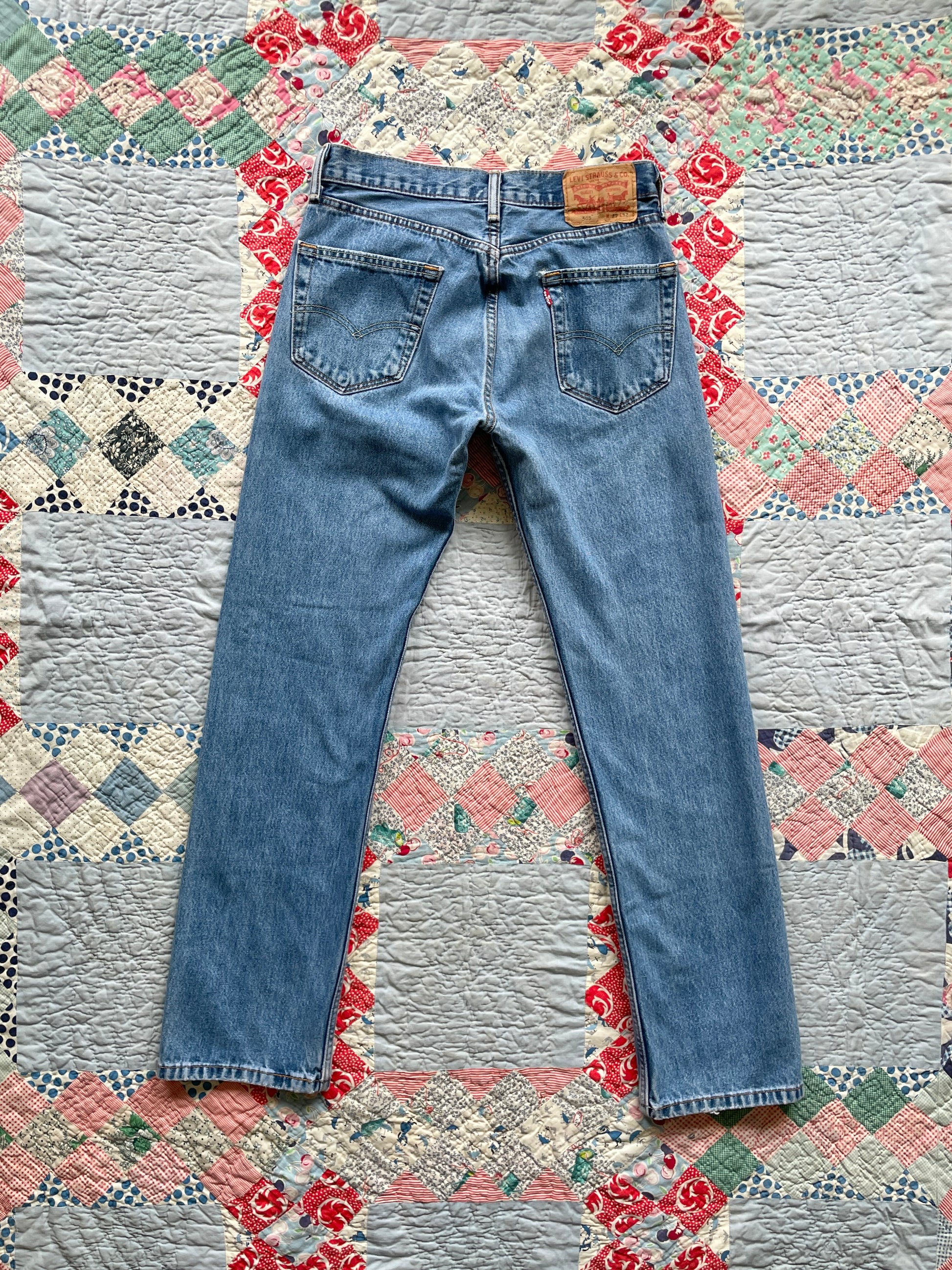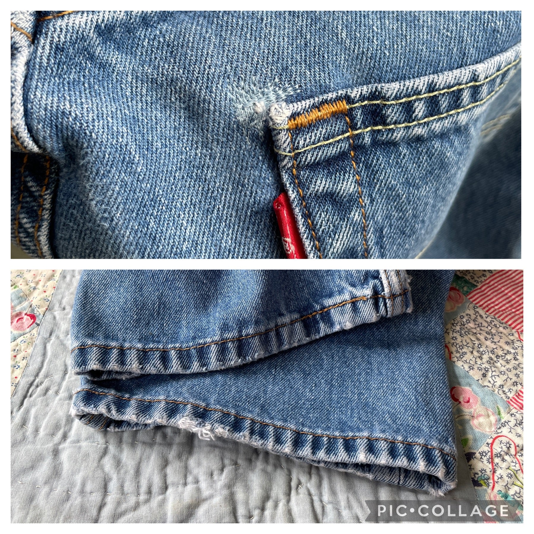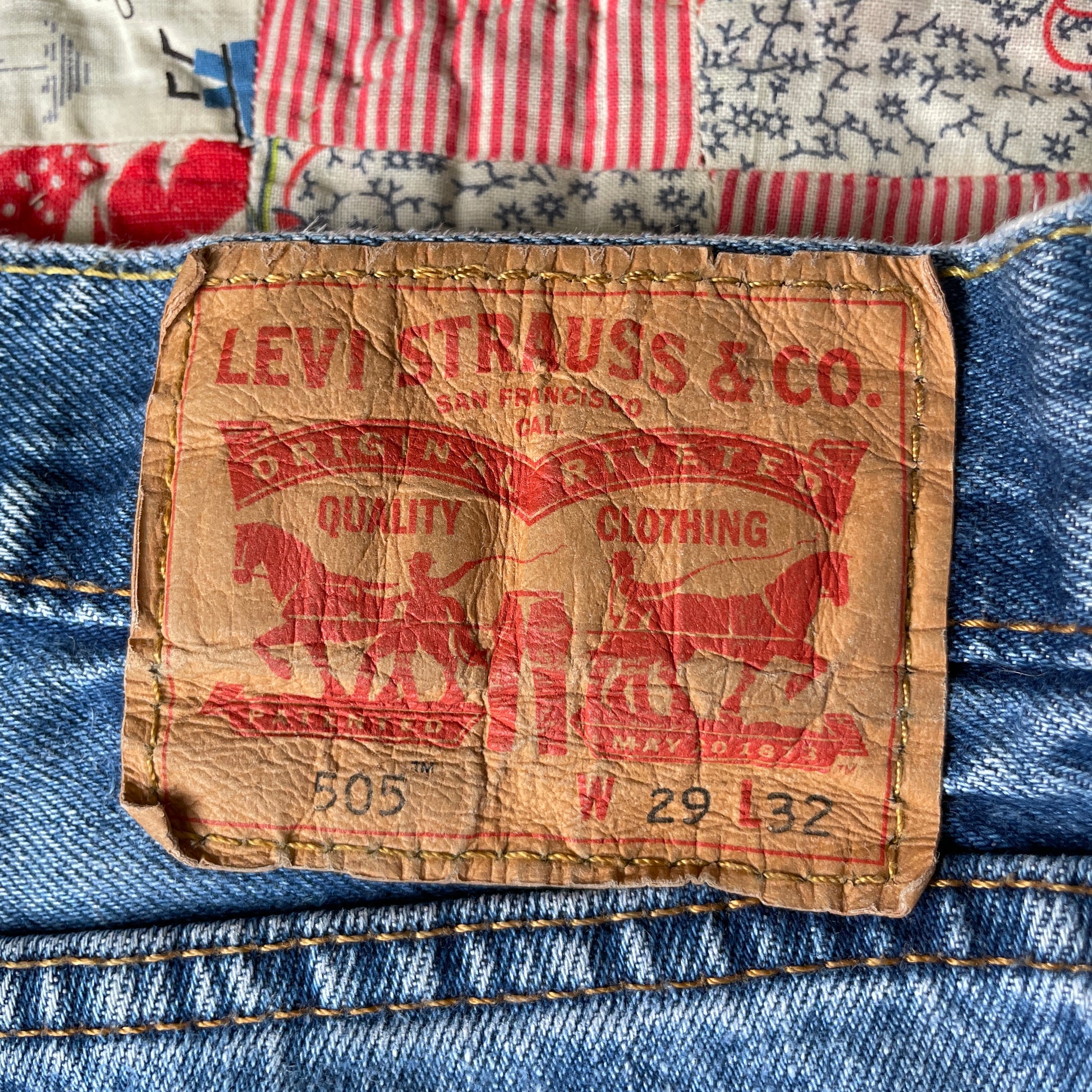 Reworked Levi's 505 Jeans Upcycled with Quilt Patches Men's Size 29 x 32